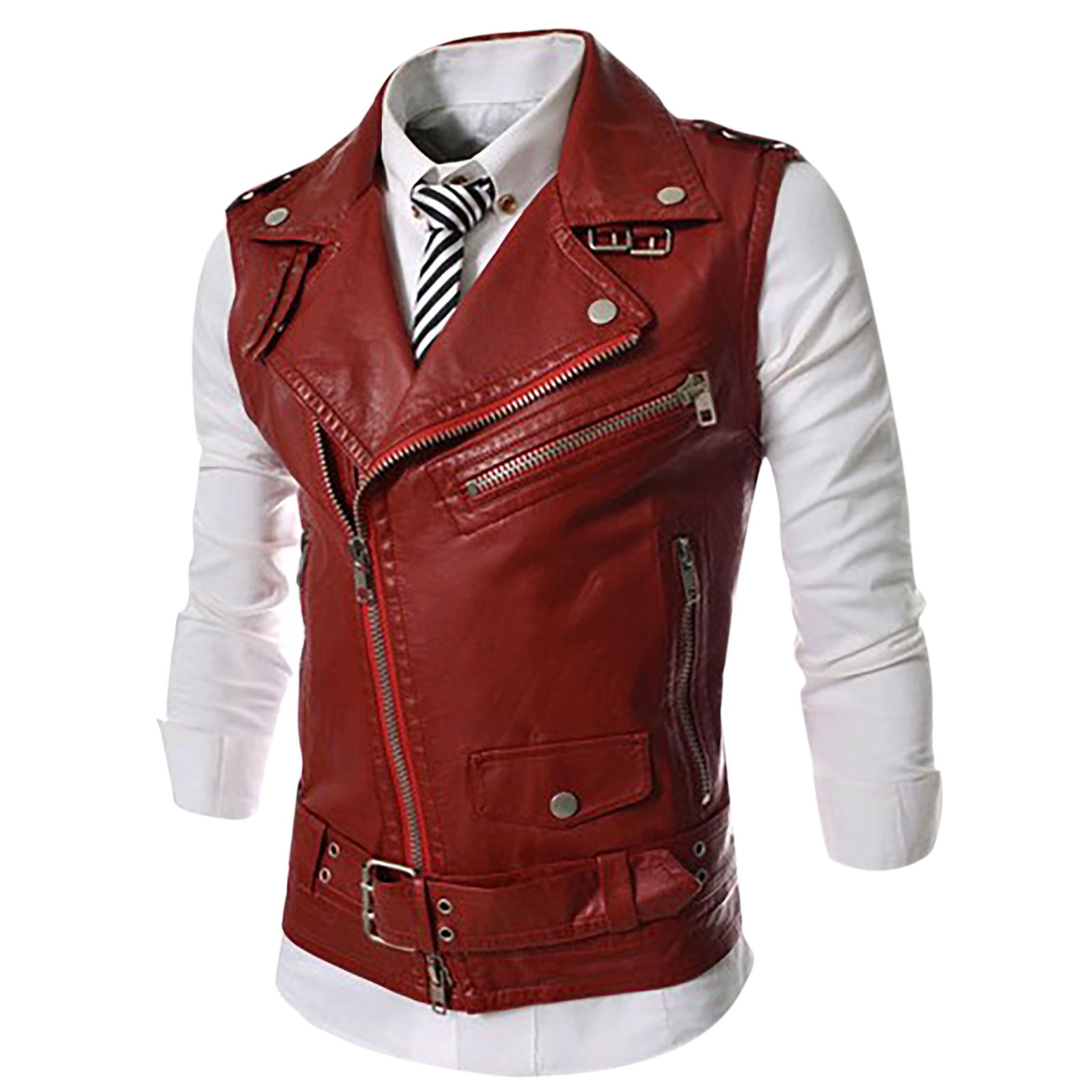 Jerdar Long Sleeve For Men Men Solid Turndown Cool Zipper Personality Slim Fit Leather Vest Long Sleeve Fall And Winter Comfortable Sports Coat Red M Walmart Com